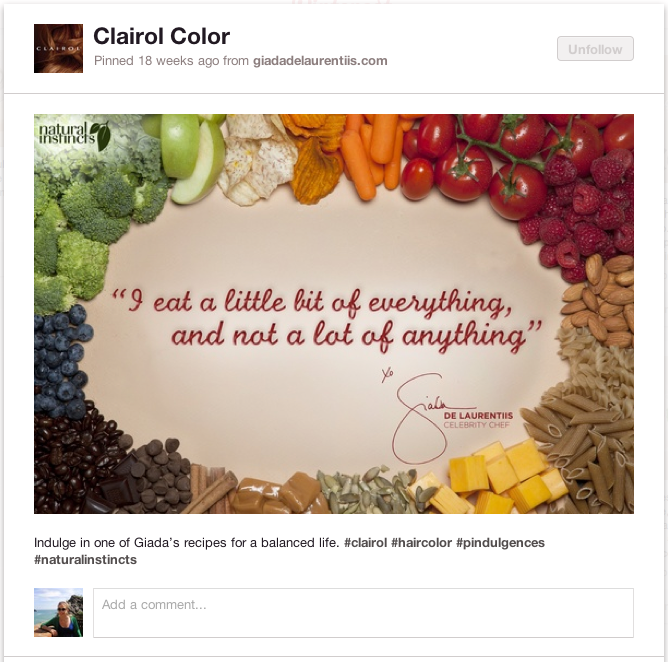 Grey: Clairol Natural Instincts / Giada Pinterest Campaign